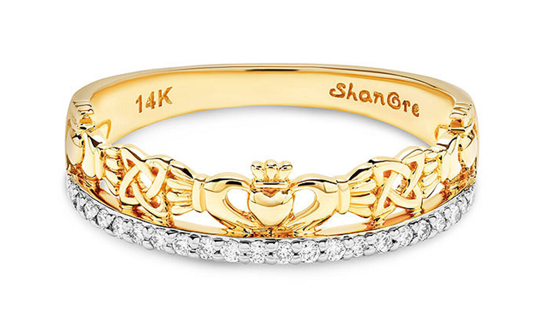 The 14kt Gold Lab Diamond Claddagh Ring blends delicate detail with deep Irish meaning, featuring the timeless Claddagh symbol framed by Celtic knots and a brilliant row of lab-grown diamonds. Crafted in luxurious 14kt gold, this piece offers durability, elegance, and a radiant finish that elevates its symbolic message of love, loyalty, and friendship. The lab-grown diamonds bring all the beauty and brilliance of mined stones while being a more affordable, sustainable choice. This ring is a refined, meaningful treasure.